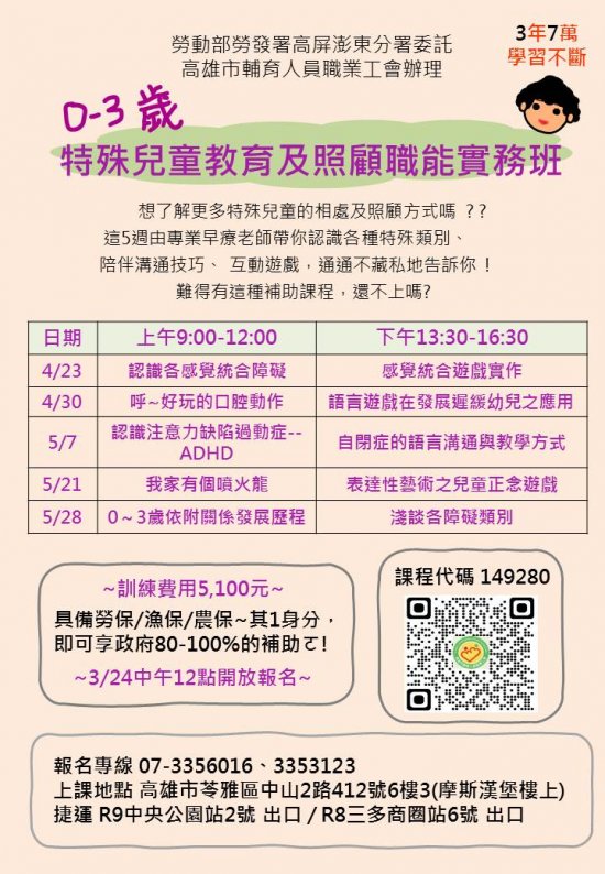 ※本課程可申請托育人員/教保人員在職研習時數※